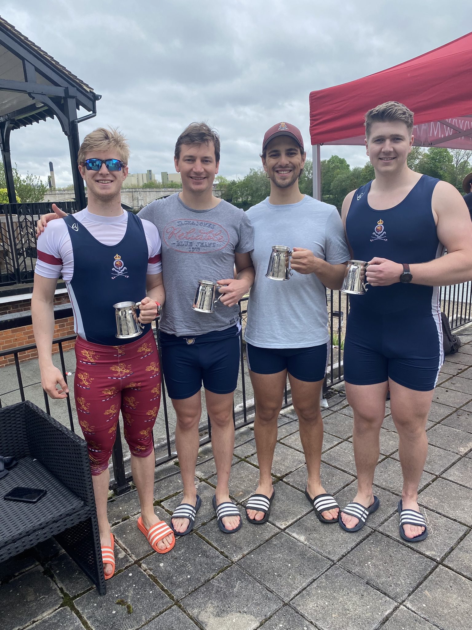 Hoping the winning streak will continue through to Henley this year, EIC's 4- crew savouring victory at Borne at Chiswick Bridge Regatta on Monday 8 May